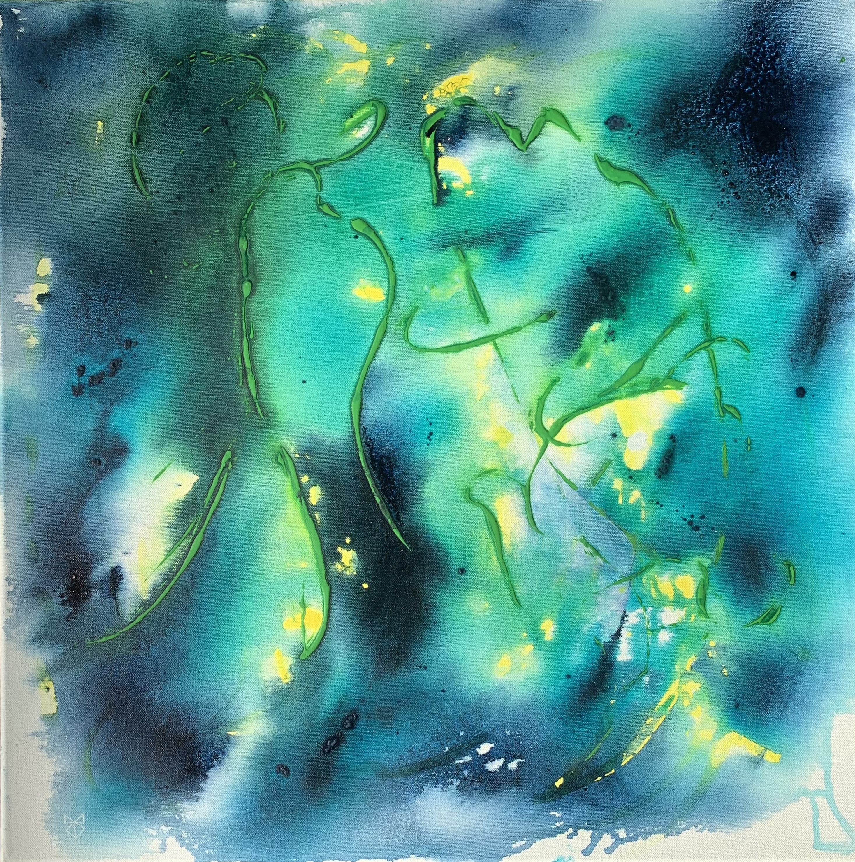 Lähtisitkö kanssani_60x60 cm_akryyli 10 novembre 2025 2934 × 2956 Meria Q aka Merja Sipiläinen-Kuhlberg, a mysterious artist who believes in miracles created by the free flow of the mind Meria Q – Would you go with me, 60×60 cm ,acrylic