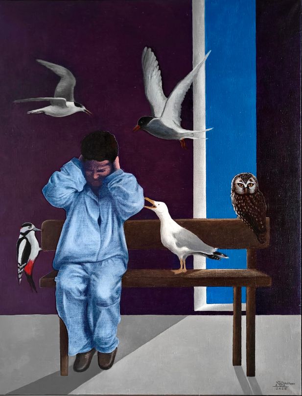 11 dicembre 2025 2332 × 3061 Christmas atmosphere seen through the eyes of 8 Finnish artists Ulla Väisänen – Angry birds – 90cmx70cm