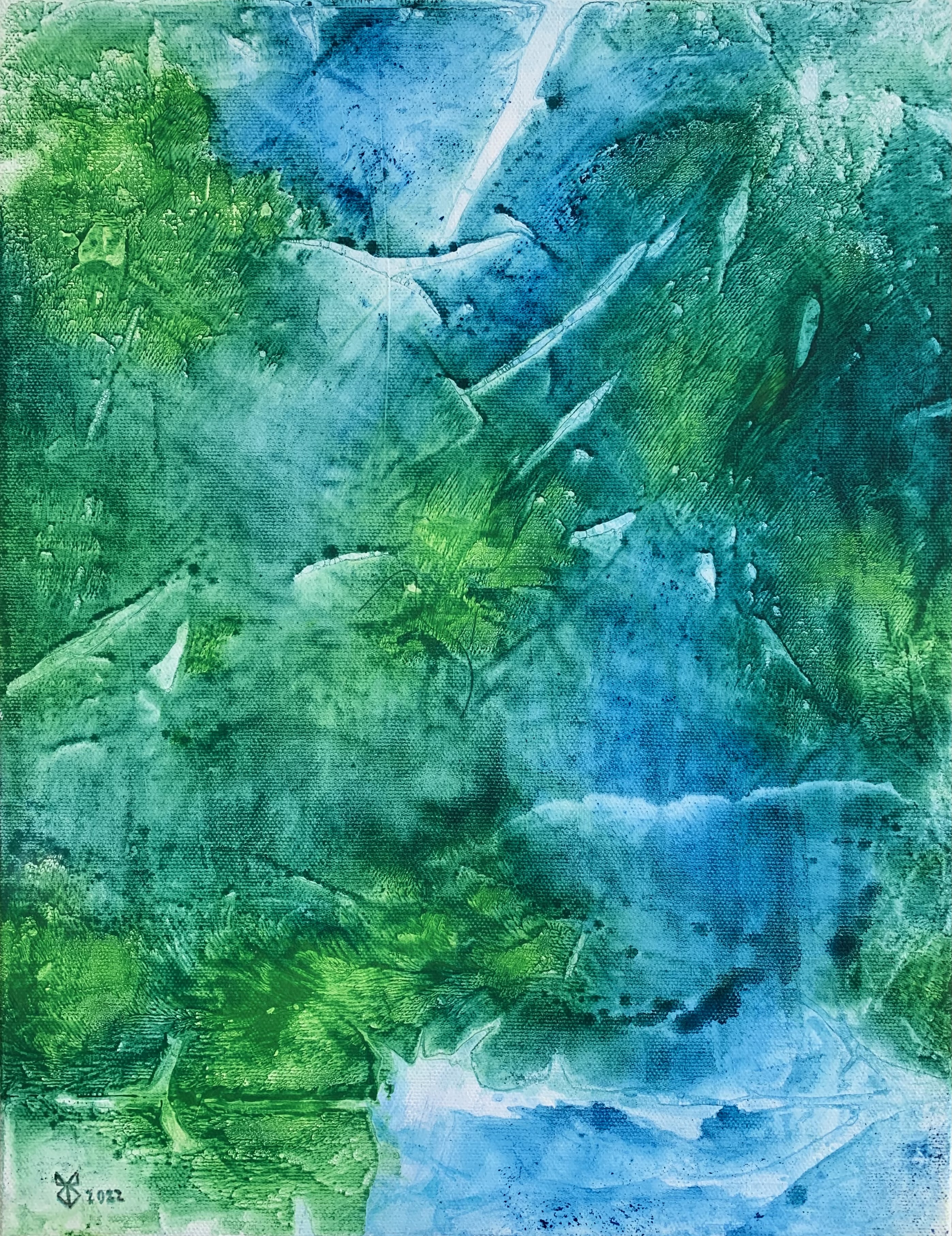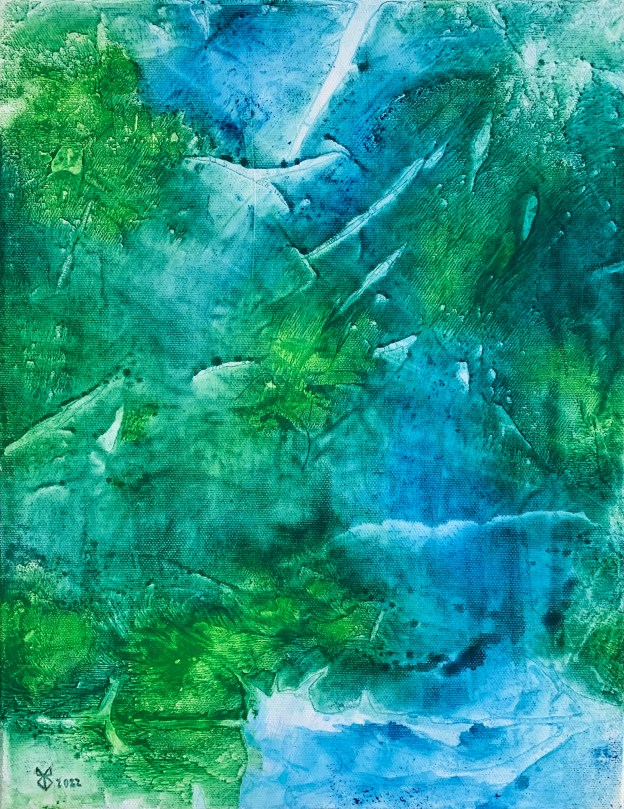 11 dicembre 2025 2795 × 3628 Christmas atmosphere seen through the eyes of 8 Finnish artists Meria Q – Can you hear the water flowing? – 27cmx35cm, mixed media
