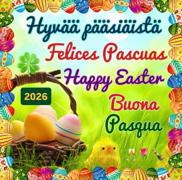 Happy Easter 2026 6 aprile 2026 750 × 740 Buona Pasqua – Happy Easter – Hyvää Pääsiäistä – Felices Pascuas – naif 2026